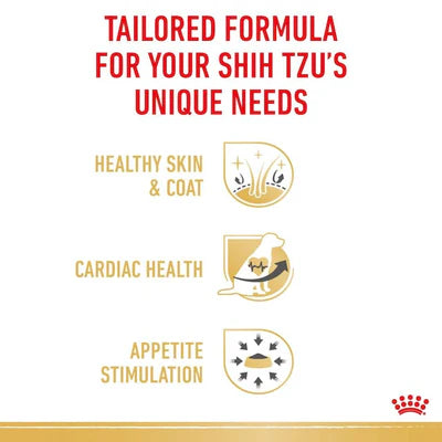 ROYAL CANIN® Shih Tzu Adult Loaf is a nutritionally complete wet food formula developed to support the health and wellbeing of adult Shih Tzus like yours.